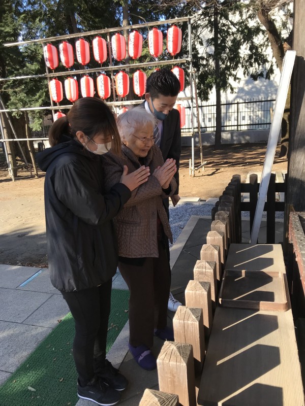 車いすに座っていらっしゃった方も「私も立ってお参りしたい」と仰られ、お手伝いをさせていただき、お参りされていらっしゃいます♪
