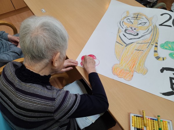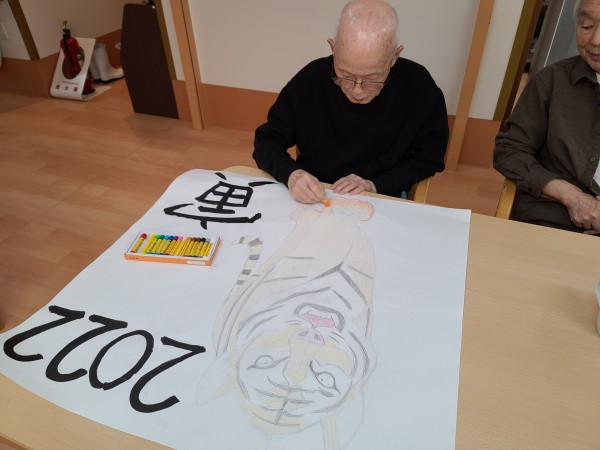 みんなの家墨田2Fでは、みなさんと一緒に今年の干支、寅を書きました♪
