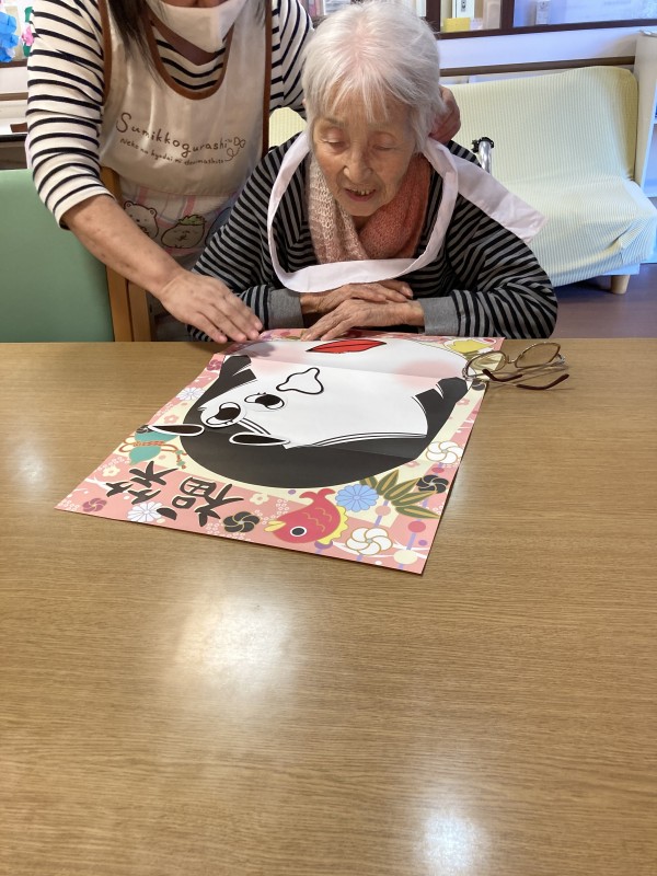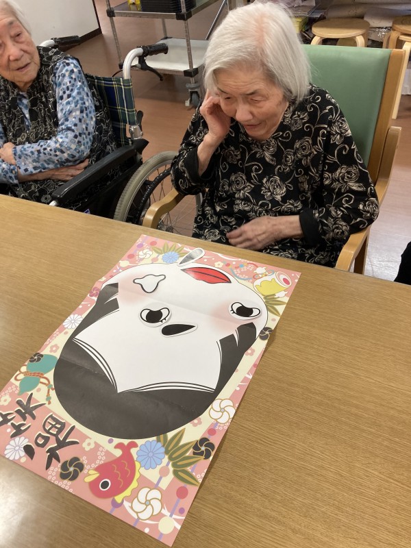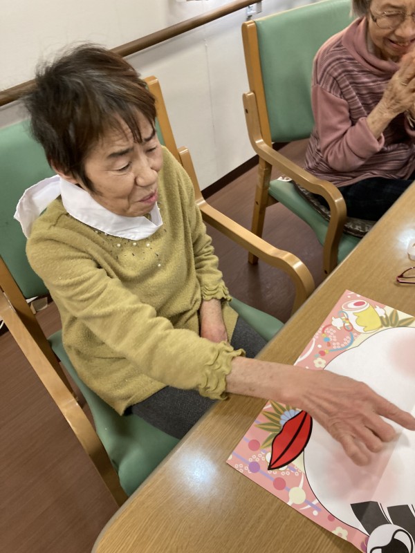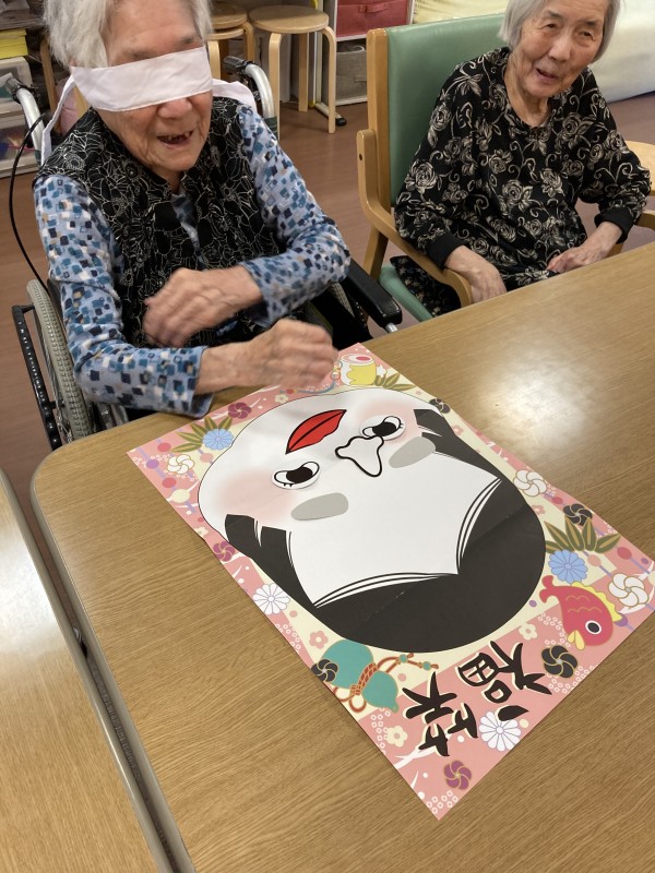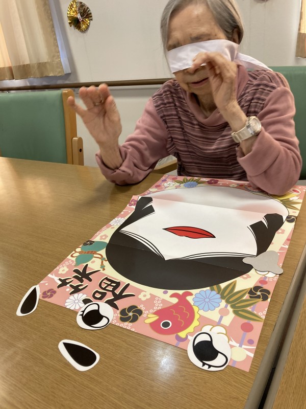 先日、入居者様に福笑いを行っていただきました