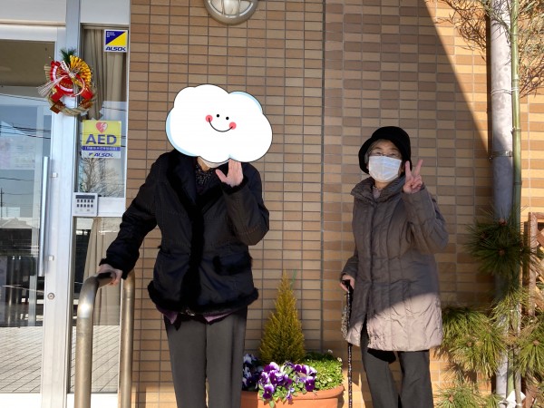 ご利用者様お2人と一緒に、施設から徒歩2分の距離にある