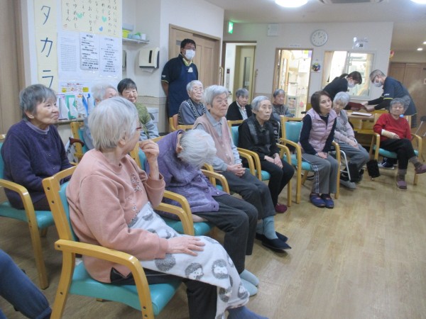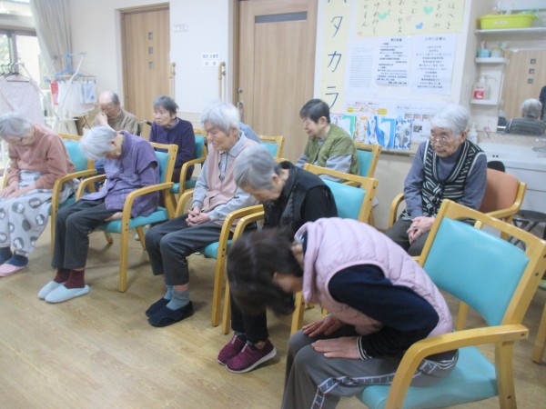 初詣のあとは、いつものように体操に参加され、手と足の運動を行いました。