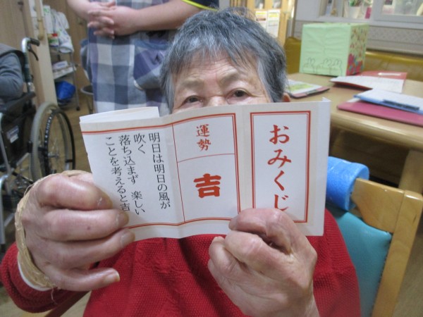 おみくじをひいていただき、「大吉」「中吉」等を見てにっこりと喜ばれてました。