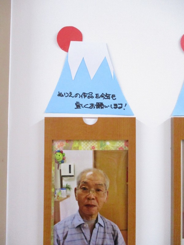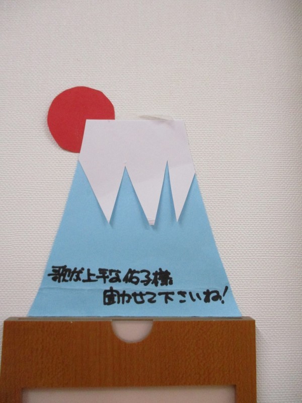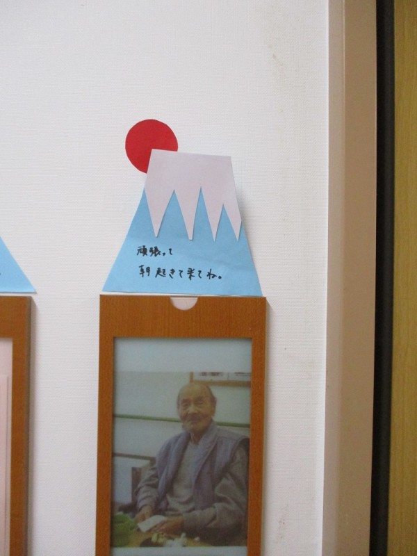 1階の入居者様のお部屋の入口に初日の出を飾らせていただきました!!