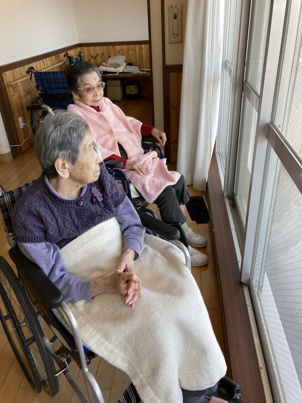 皆様で、窓越しから中庭を眺めます♪