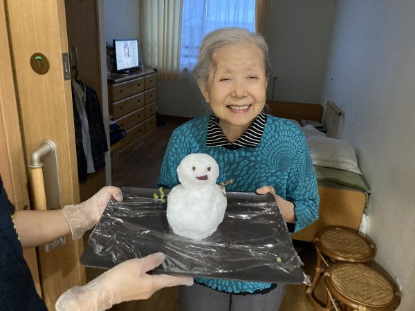 こんにちは! グループホームみんなの家川崎野川南台です! 雪を皆様に触っていただきたくて、、、 雪だるまを作ってお届け(^^)/