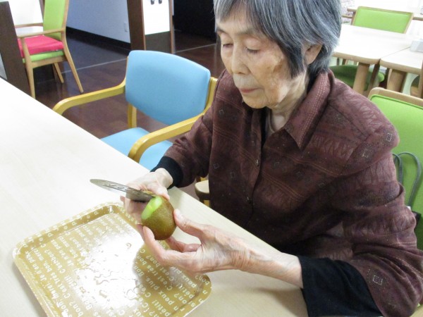 キウイの皮むき。リンゴも皮むき。