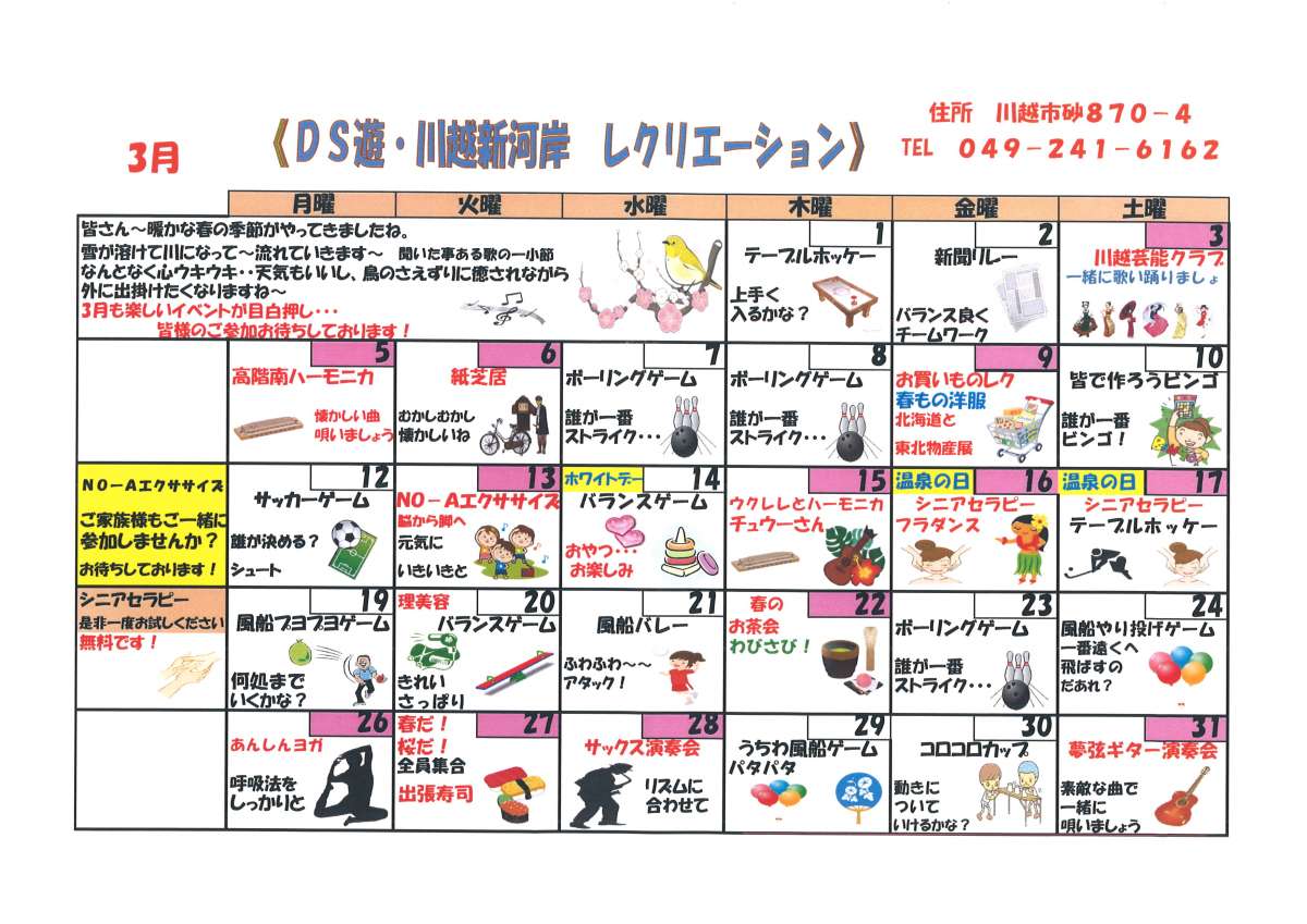 3月のレクリエーションカレンダーが出来上がりました!