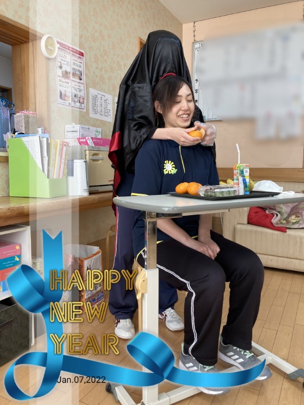 私は、大晦日から元日にかけ、夜勤業務でしたので、ご利用者の皆様と朝から美味しいものを食べ、歌を歌ったりお正月らしさを満喫させていただきました。