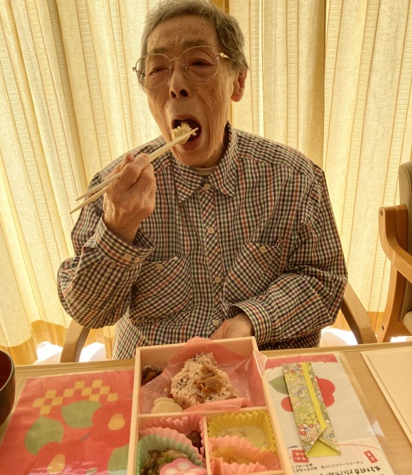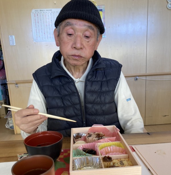 元旦のお昼ごはんに、仕出しですがおせち料理を召し上がっていただきました。