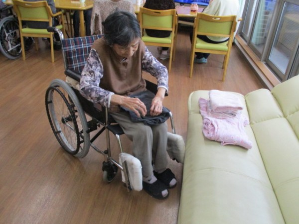 こんにちは!グループホームみんなの家・あきがせの介護ブログです。よろしくお願いいたします。お洗濯物を畳んでくださっているご様子です!!