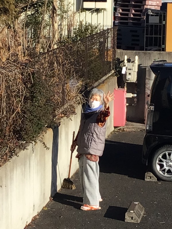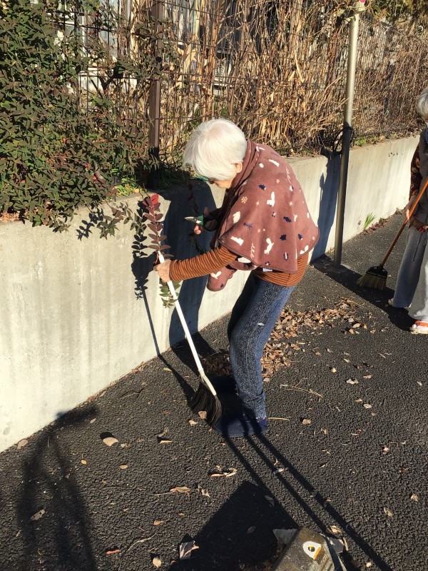 天気の良い日の外気浴です。と思ったら、枯葉が散乱しているのを見て掃除をしてくださいました。