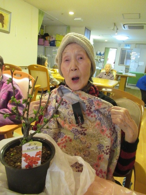 ご家族からいただいた、ボケの花(紅吹雪)がきれいに咲きました。