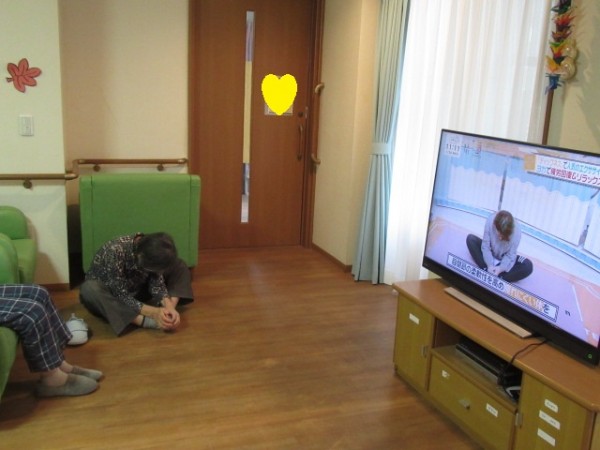 始めはテレビを見ていたのですが、体操(ヨガ?)が始まると、すっと床に降りて、