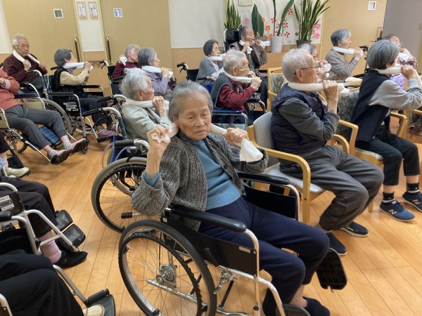 2月もまだまだ寒いですが体調を気を付けてコロナに負けずにいきましょう(^^ 2/2は高橋先生に来設いただき、タオル体操を行いました!!! タオル一つでできる運動なので取り組みやすいですよね(*’ω’*)