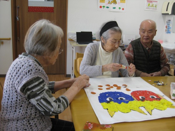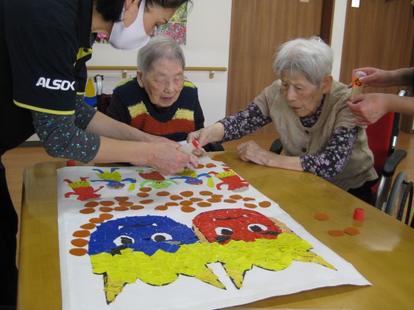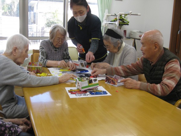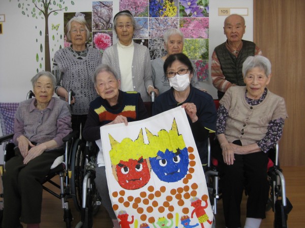 今回は、節分の季節なので鬼の貼り絵を行いました(^^)/