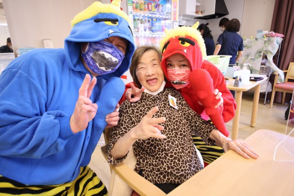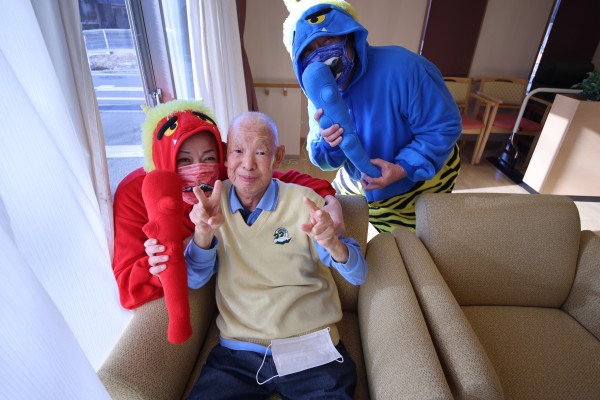 と…利用者さまが油断している隙に、素早く赤鬼&青鬼が室内に乱入して、大暴れ!