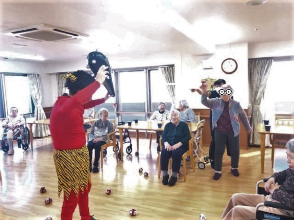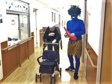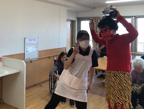 鬼役の2人の職員、とても頑張ってくれました。普段は優しい介護士さんなのです☆