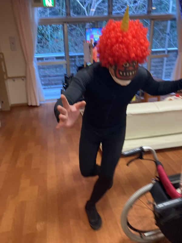 ご利用者様の皆様に豆をまいていただき鬼を追い払ってもらいました