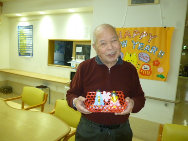 職員により小さなひな人形を作りました。