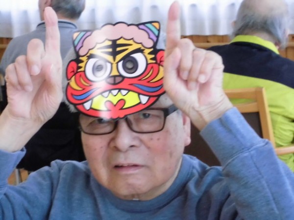 鬼のお面をつけての撮影会は照れくさいなぁ…と仰りつつも沢山のご入居者様が参加してくださいました!!