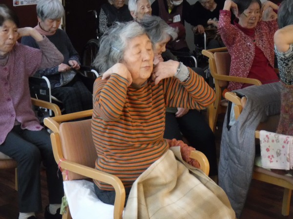 初めに入念なストレッチを行って体を温めてから音楽に合わせて体操すると、皆さん体が良く動きます。