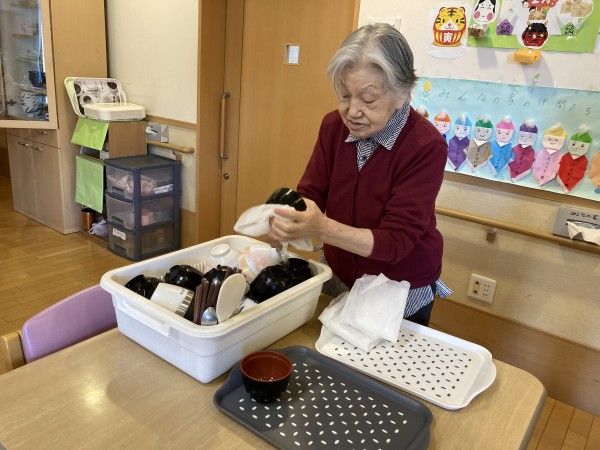 毎朝お手伝いで洗った食器を拭いて下さいます。お礼を言うと