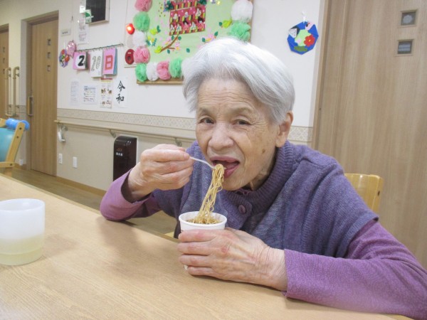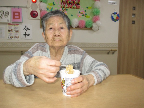 熱いラーメンをふうふうしながら、「おいしいよ」と喜んで下さいました。