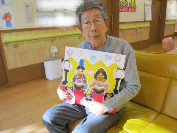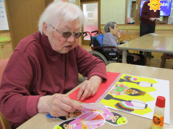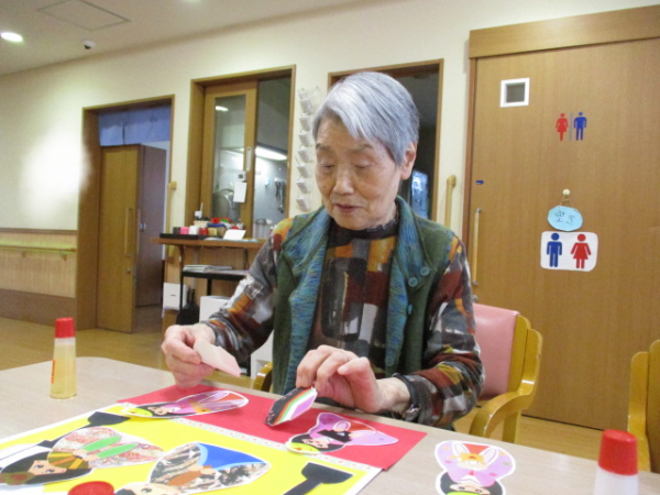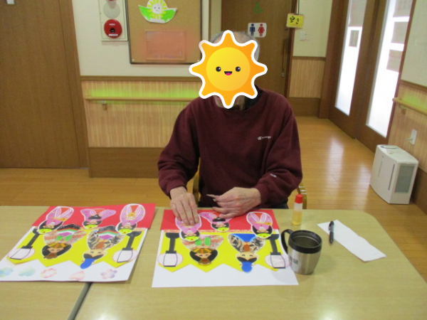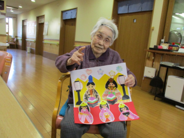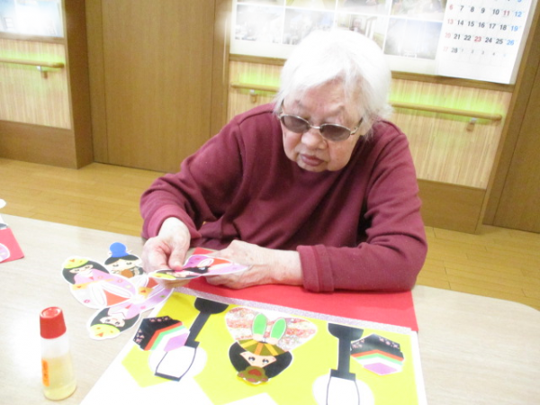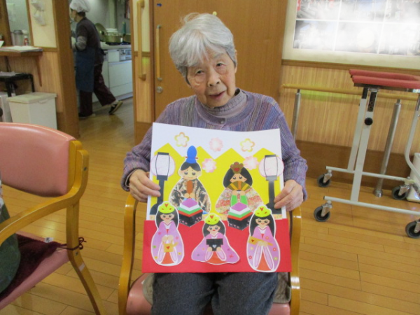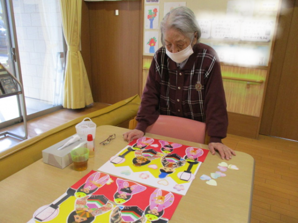 外は寒いですが温かいホーム内でおひなさまの貼り絵を作成されました(^_-)-☆