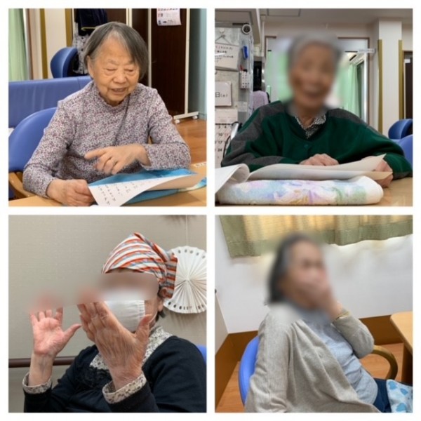 職員が手書きした歌詞カードを見ながら、みなさん元気に歌ってくださいました♪