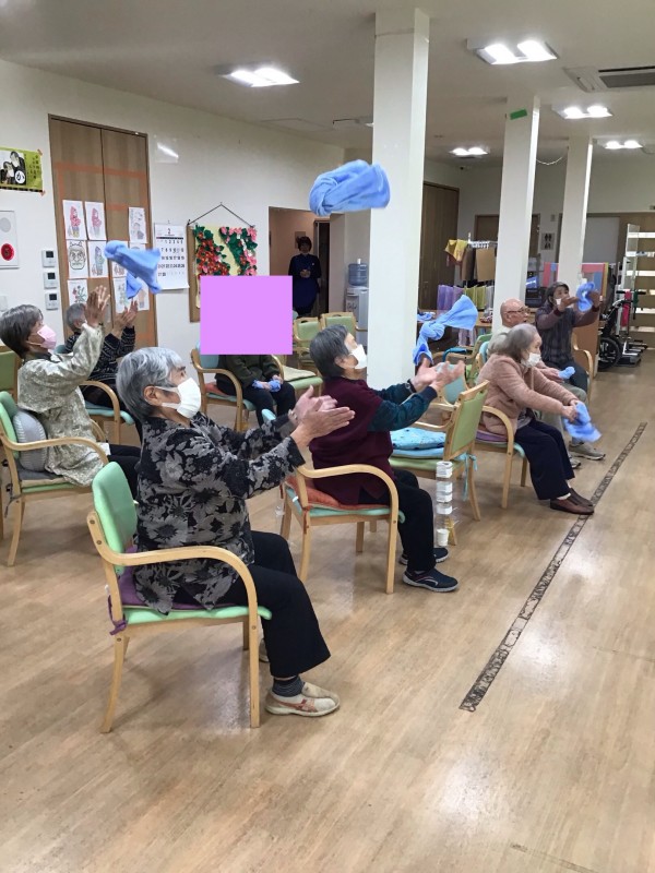 リモートで先生のご指導を受けながらタオル体操を行いました!