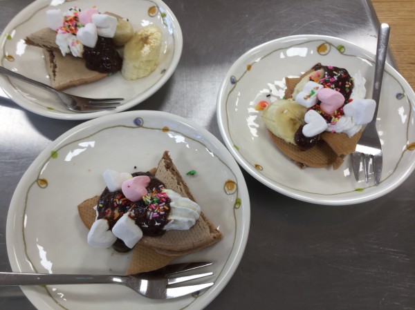 こちらは何やらホットプレートを使ってチョコレートケーキ作りが行われているようです????