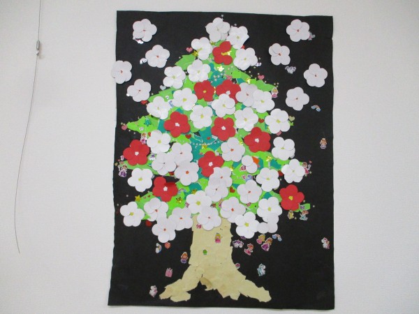 ご利用者様に桜の花びらを切っていただいています。 (笑顔が素敵!)