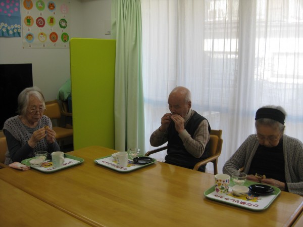 雛祭りの歌を合唱しおやつを召し上がり楽しまれました!(^^)!