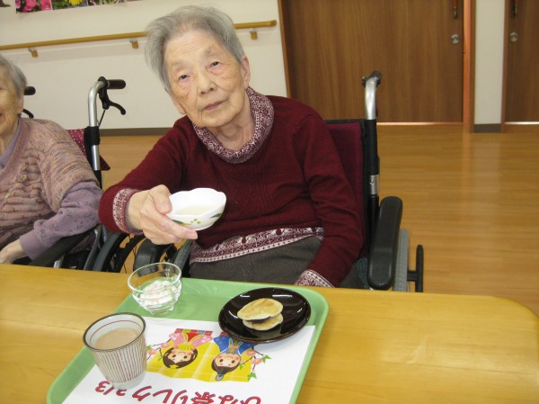 手作りどら焼き・ひなあられ・甘酒を提供しました。今日は嬉しい一日ですねと完食されました( ^ω^)・・・
