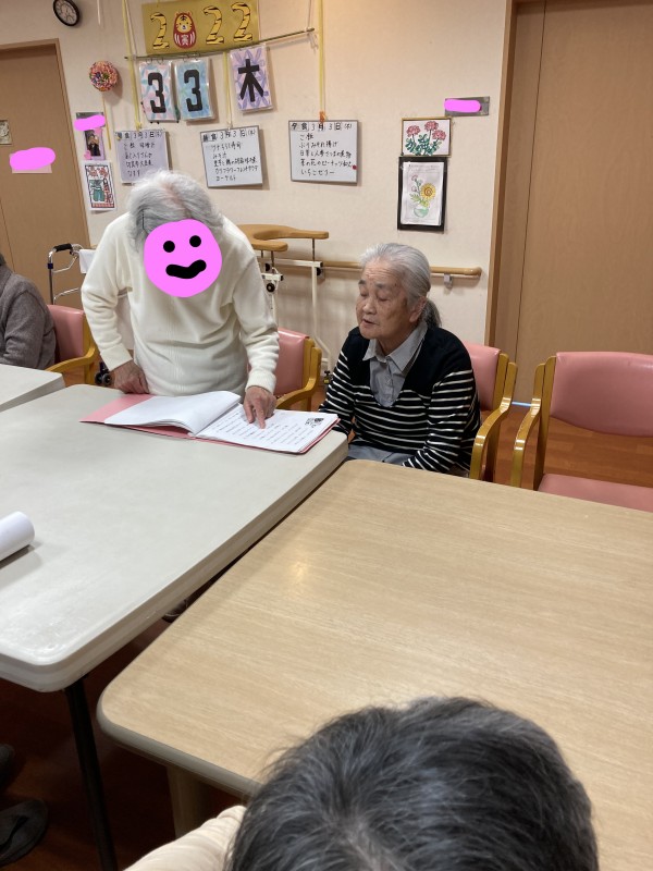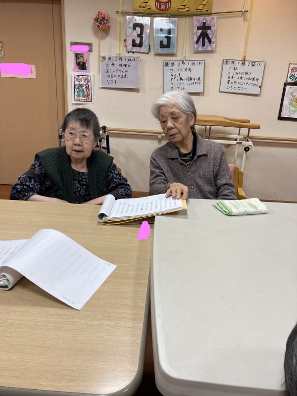 1F・2Fのご利用者様合同でひな祭りらしく