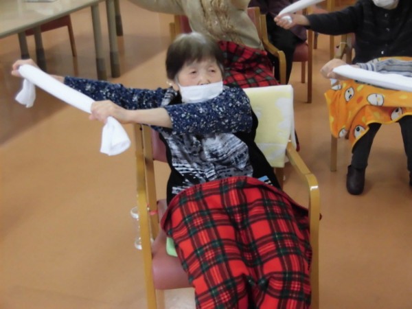 日頃何も持たずに体操を行うことが多いと思いますので、今回タオルを使った体操はいつも以上に刺激を与えたのではないでしょうか?