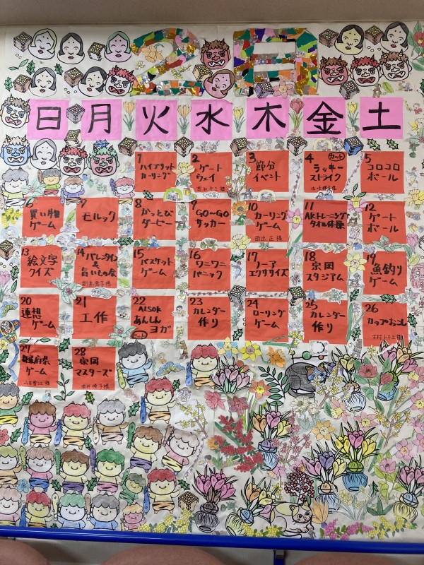 今月のレクリエーションカレンダーです。ようやく、元気いっぱいの中宗岡に戻りつつあります。