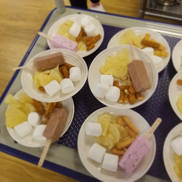 皆さん、お皿一杯のアイスとお菓子に笑顔が止まらないです(^_-)-☆
