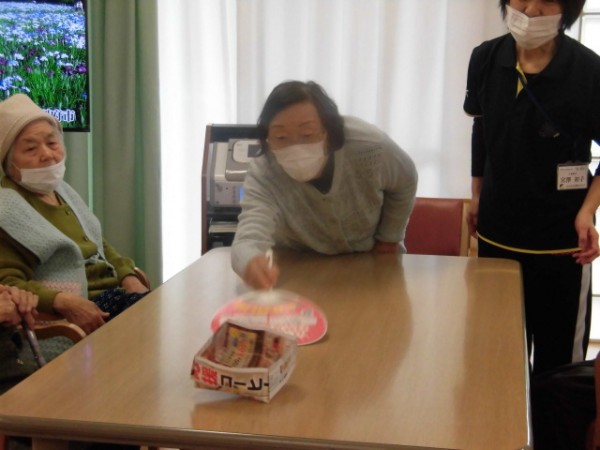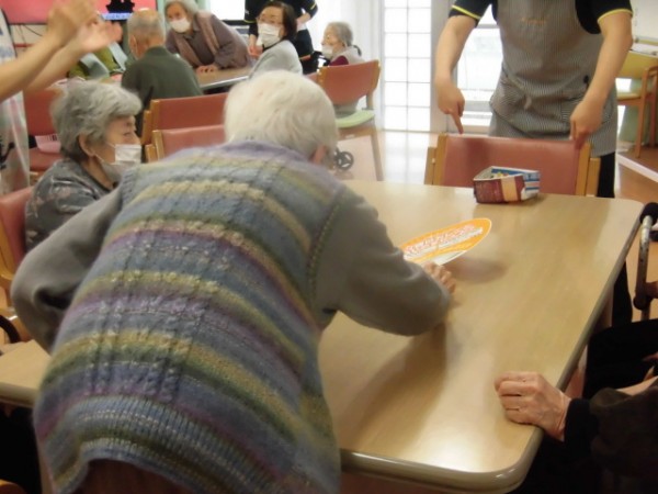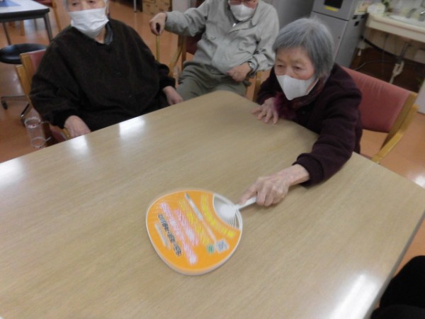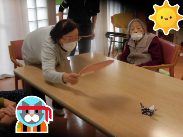 そんな本日の遊蓮田は、新しいレクリエーション「うちわでティッシュ飛ばし」というゲームを行いましたー♪