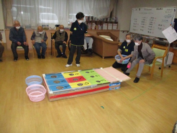こんにちは!デイサービスセンター遊 西東京です! 今日の運動レクリエーションは『コロコロビンゴ』です!