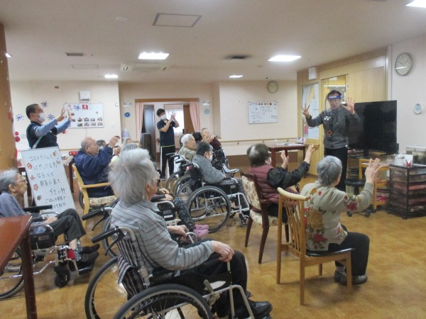 ご利用者様や職員も、指の体操や足上げの体操に、真剣に取り組まれていました(*'▽')。