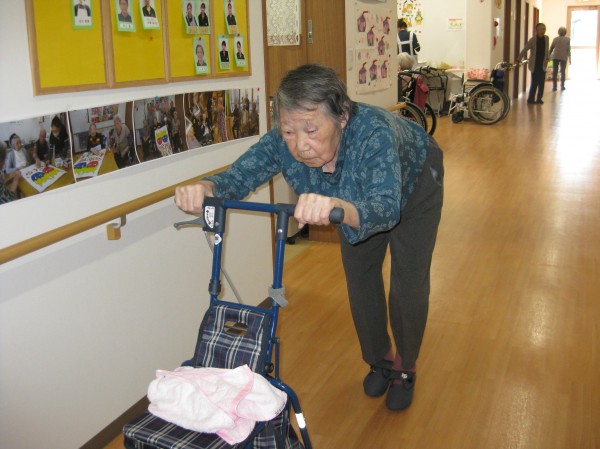 一生懸命にシルバーカー歩行されているご様子です!!  いつも楽しく廊下を歩き歩行訓練されています( ^ω^)・・・ 少しずつ体力維持できているようです(笑)笑顔が素敵です????