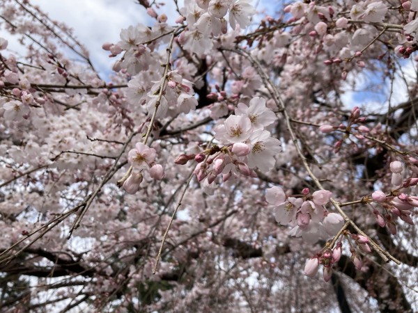 少し歩いたところにある「宝鐘寺」には、もうすぐ満開になる枝垂桜が…