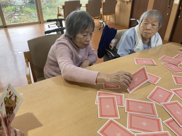 室内では春の飾り付けの準備や、トランプで神経衰弱などして過ごされています(⌒∇⌒)