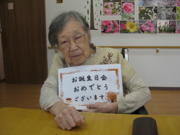 こんにちは!グループホームみんなの家・あきがせの介護ブログです!よろしくお願いいたします。3月の1階のお誕生日会を行いました。今月はお一人の方でした!!