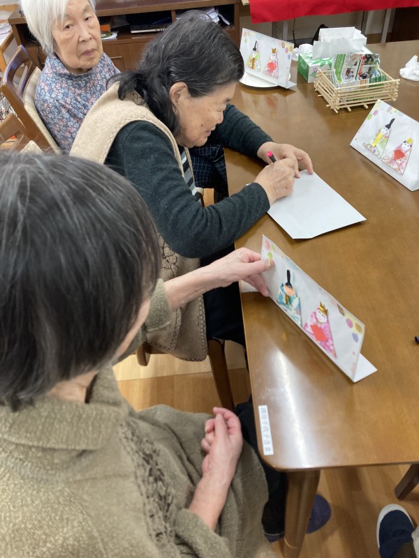 少し前になりますが、ひな人形の折り紙レクリエーションをした時の