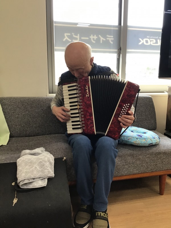 ご利用者様がアコーディオンを持って来てくださいました!