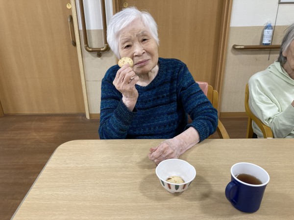 こんにちは(^-^) グループホームみんなの家・横浜羽沢です。 午後のレクのあとはおやつの時間(*^_^*) 紅茶で喉を潤し美味しいクッキーを 皆さんで頂きました(^O^)/
