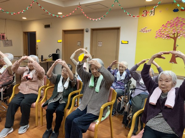 行われているタオル体操の様子をどうぞ。
