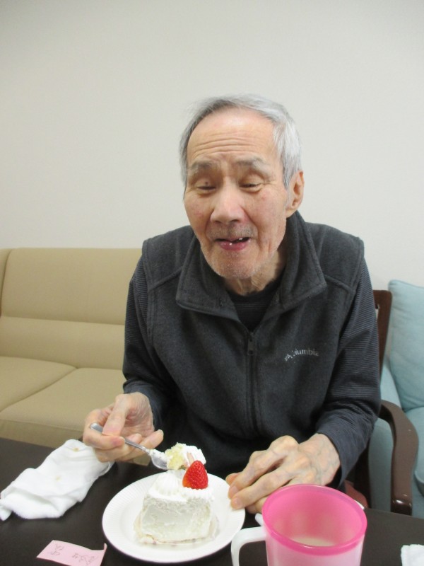 3月にお誕生日を迎える皆様にお集まりいただき、誕生日会を実施しました。みな様に好きな料理を選んで頂き、選んで頂いた料理をデリバリーにて取り寄せ3月に誕生日を迎える皆様と共に召し上がりました。選んだ食事は皆様それぞれ違いますが、ホームからケーキと粗品をプレゼントさせて頂きました。